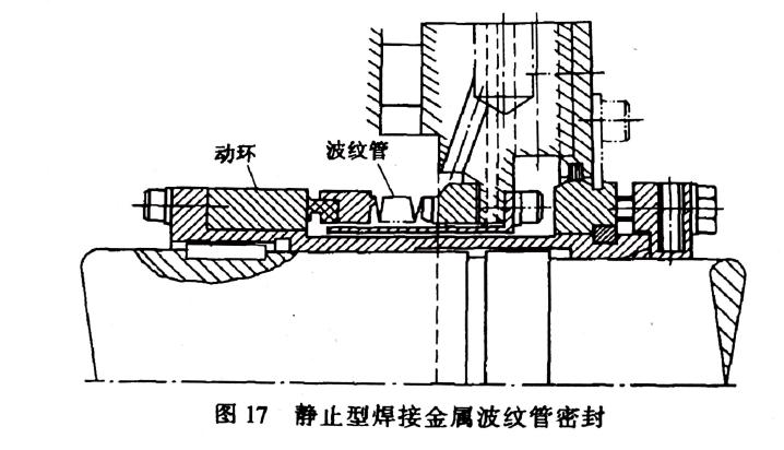 動環(huán)可分為非補償型和補償型兩種。在靜止型機械密封中,采用非補償型動環(huán),這種動環(huán)緊固在軸上(圖17),有的用軸套壓緊在軸上(圖3),明顯可見,這類動環(huán)不能浮動。