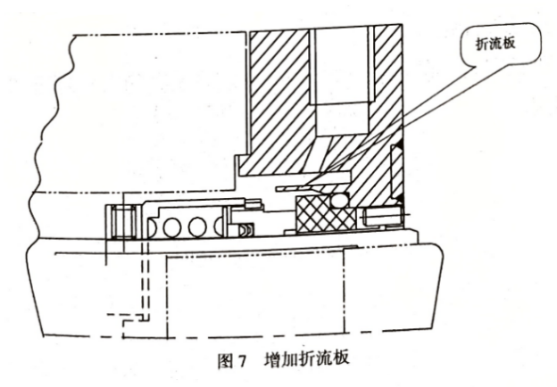 改變沖洗位置,或增加折流板(圖7),或采用多點沖洗的辦法。