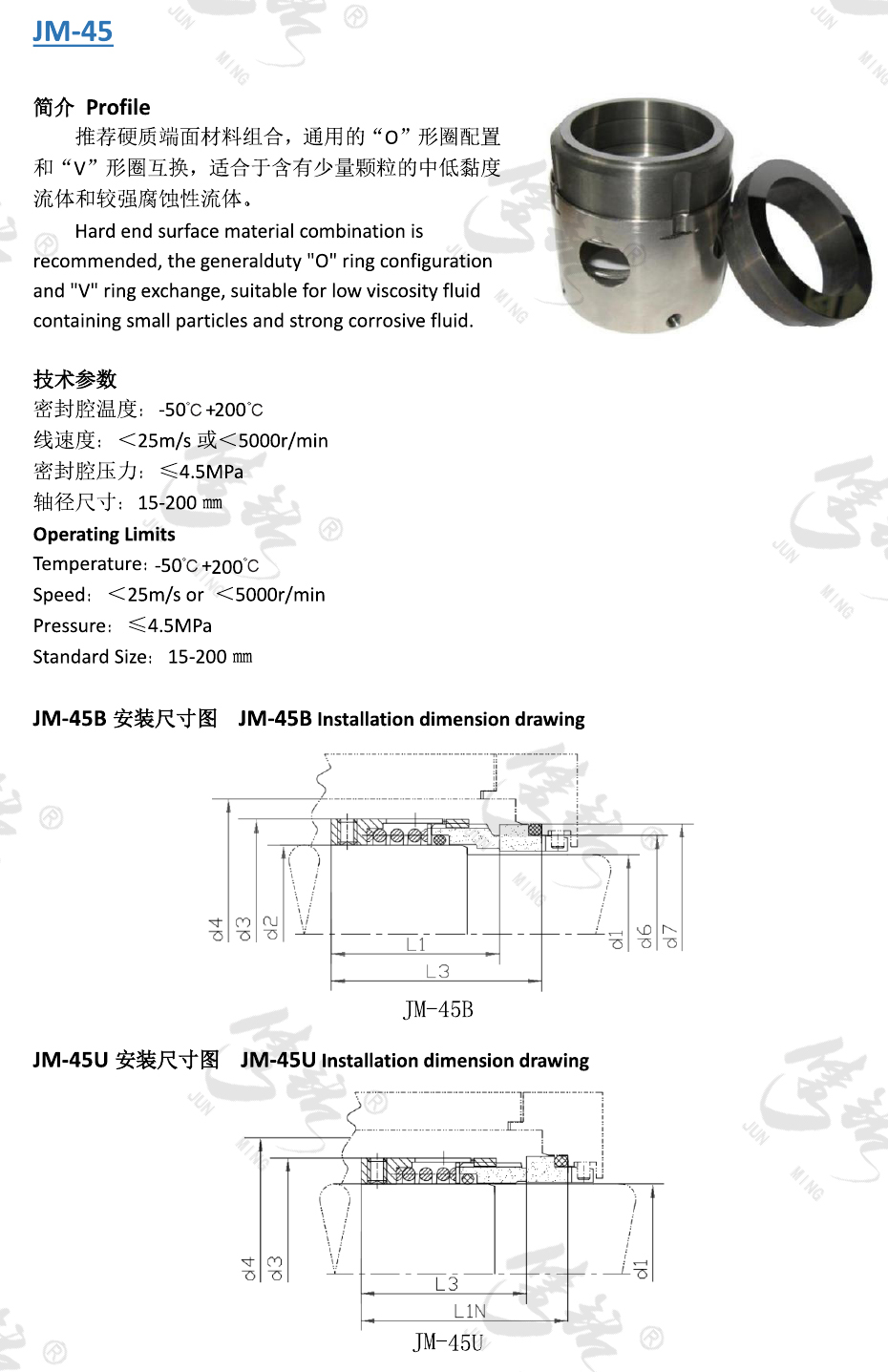 推薦硬質(zhì)端面材料組合,通用的“O”形圈配置和“V”形圈互換,適合于含有少量顆粒的中低黏度流體和較強(qiáng)腐蝕性流體。
